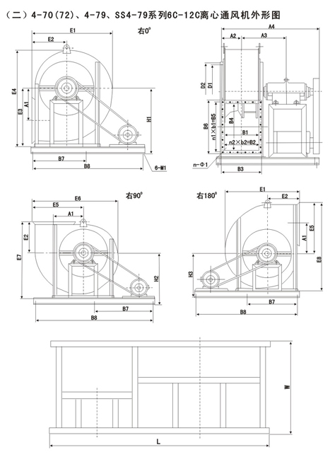 4-72型不锈钢离心风机风量:930~154000m3/h,风压170~2950Pa;4-79型通风机共20种机号,风量1100~438000 m3/h,风压230~3320Pa,用户可根据不同参数选择。 本系列风机广泛应用于各类大中型工厂和高级民用建筑、大型广场输入和输出气体的室内换气通风。如客户有特殊要求,本公司则可以根据用途不同,选择不同材料制作成防爆、防腐、耐高温型风机,以满足广大用户的需要。